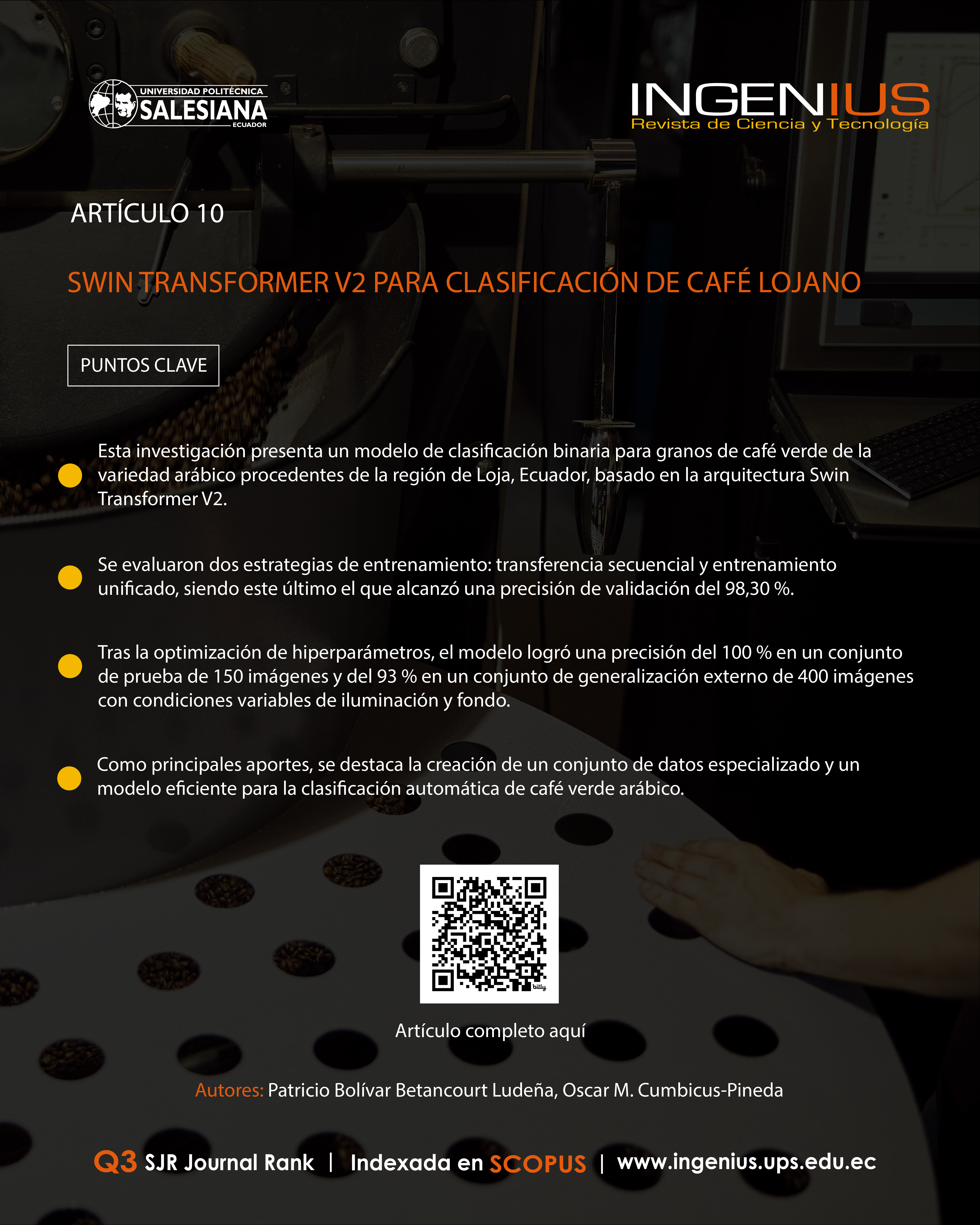 Ingenius, Revista de Ciencia y Tecnología, cordially invites researchers, teachers, students and the general public to participate in the submission of manuscripts related to empirical research, technological development reports, proposals for models and innovations, products from the elaboration of undergraduate and graduate theses that contribute to the field of science and technology, as well as selected state-of-the-art reviews. These contributions should be in the fields of Mechanical Engineering, Electrical and Electronic Engineering, Computer Science and its integration into what is currently known as Mechatronics.