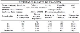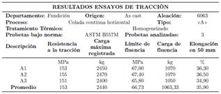 La escasez de estudios in situ sobre procesos de colada continua horizontal en aleaciones de aluminio, impulsa la necesidad de investigar la influencia de temperatura, velocidad y materia prima en billets de aluminio homogenizados AA6063. Aplicando ensayos de espectrometría, permiten cuantificar el porcentaje en peso de aleantes principales magnesio y silicio. Estos elementos al precipitar forman siliciuro de magnesio (Mg2Si) durante el proceso de homogenizado. Para este estudio se produjo billets de aleación normal y experimental, demostrando una relación inversa entre los niveles de siliciuro de magnesio y dureza Brinell; así también la influencia de bajos niveles de porcentaje en peso de Mg2Si en la reducción de la resistencia a la tracción en el material.
