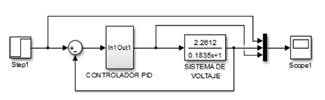 Figura 4. Simulación del controlador PID para el sistema de voltaje.