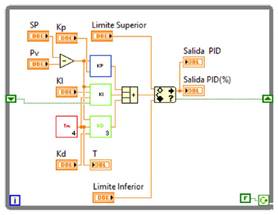Figura 6. Implementación del controlador PID en Lab-VIEW.
