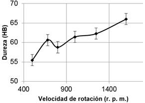 There is a clear trend in the transportation industry for the reduction of weight in structural components with the objective of improving the efficiency of energy consumption. The materials that are used for this purpose are aluminum and magnesium alloys; however the same as when bonded by fusion welding methods, the joints have low mechanical properties compared to the base material. Friction welding is an alternative to solid join these materials and has shown good compatibility and high efficiency. The objective of this work is the analysis of the effect of the welding speed on the mechanical strength of the joints for the 6061 T6 aluminum alloy welded by FSW. From the study, we obtained curves of tensile strength, guided bending and hardness in the weld showing better behavior in specimens that were joined to a higher speed of rotation of the tool. |