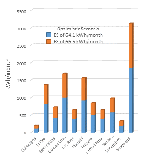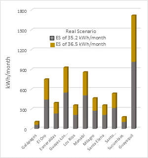 region of Ecuador for the two proposed scenarios, optimistic or expected (Figure 7) and real or measured (Figure 8), based on the data of Table 6.